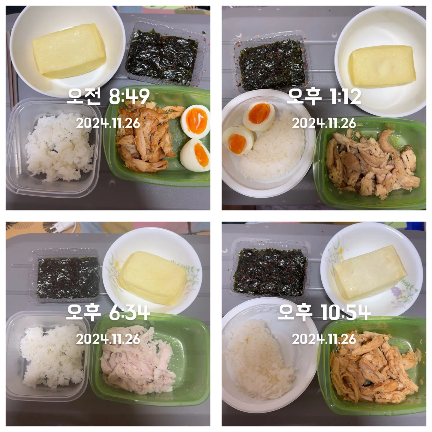 끼니당 탄수 150을 잡고, 메인 단백질 + 계란 보조 단백질을 같이 먹습니다.