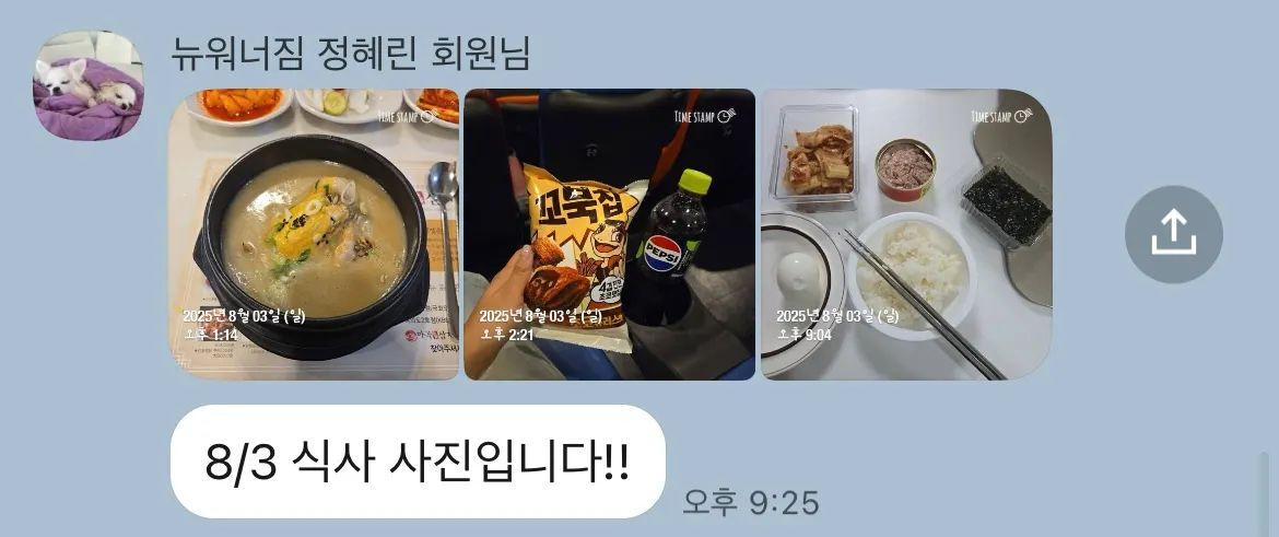 (2) 20:00→ 20시 식사는 밥 양 이런거는 모두 괜찮은데 닭가슴살 1팩 같이 해서 드셔주시는게 좋습니다. 국물은 저정도는 드셔도 괜찮은데 습관화 시키지 않는것이 좋습니다. 국물을 먹다보면 국 없으면 밥 못먹음 → 처음에는 소량의 국에 힐링하지만 점점 수위가 쎄짐 , 국에서 찌개로 찌개에서 샤브샤브로, 샤브샤브에서 마라탕으로 점점 쎈 음식을 찾기 때문에 그 요인을 아예 없애버리는게 좋아요! , 그리고 마지막 식사에서 닭가슴살 1팩을 추가한 형태의 식사를 하루에 기본 2-3번 베이스로 잡고 가고, 일반식을 먹더라도 나머지 끼니는 마지막 식사같은 형태를 2번은 드셔주십니다! (닭가슴살이나 저지방 육류 추가해서 탄>단>>지 식사를 만들어주는거에요~)