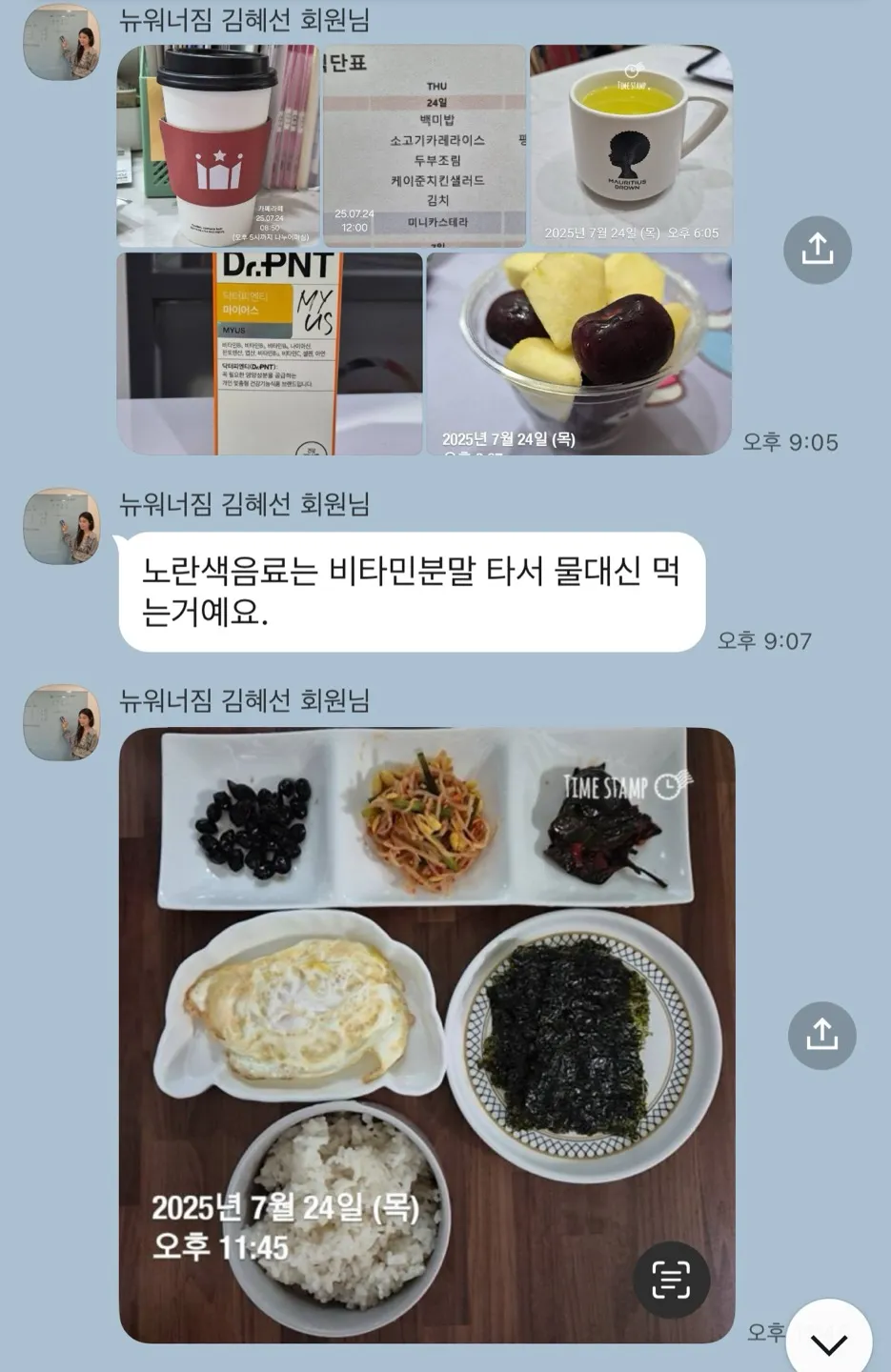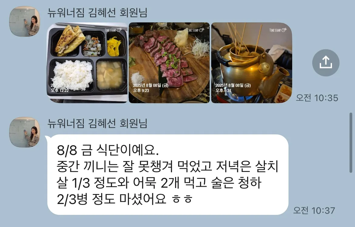 (1) 11:51 → 삼겹살 (10점 정도 쌈싸서) / 부침개 / 전병 / 햄 / 묵사발 , 과잉탄수,과잉단백질, 과잉 지방의 식사 패턴인데 단백질은 10점 정도라 아슬아슬 하지만, 탄수도 탄수 나름이고, 지방이 굉장히 문제입니다. 거의 세뇌시키드리듯이 말씀드리는 탄 4-60 으로 적당히 잘 챙겨먹어주는 탄수화물과, 단 2-30 (40까지는 허용) 으로 끼니당 흡수가 될 만큼만, 지방 20 이하 (적정 10)으로 잉여칼로리가 최대한 안쌓이게 , 이렇게 가이드를 잡아가는 것에 대비하면 삼겹살은 이미 100그람만 먹어도 지방 함량 30에 육박하기 때문에 닭가슴살 대비 월등하게 높은 칼로리가 나오는것입니다. 여기에 부침게/전병에 튀겨지는 기름과 햄에 들어가는 탄수와 지방, 이 날의 식사로 지방 6-70은 훌쩍 뚫어버리고 (10점 드신게 이렇다면 보통 사람들이 생각없이 먹는건 정말 어마어마 한겁니다! 그러니까 뱃살 흘러내리고 , 동맥경화 걸리고 통풍걸리고, 당뇨 오고 하는겁니다) 단백질도 50은 훌쩍 넘어버릴꺼 같고 (간 피곤해지고 신장 아야합니다) , 탄수도 부침개, 묵사발과 묵사발에들어가는 소스 탄수, 전병 여기만 해도 탄수 섭취 100 금방 훌쩍 넘어버릴겁니다.